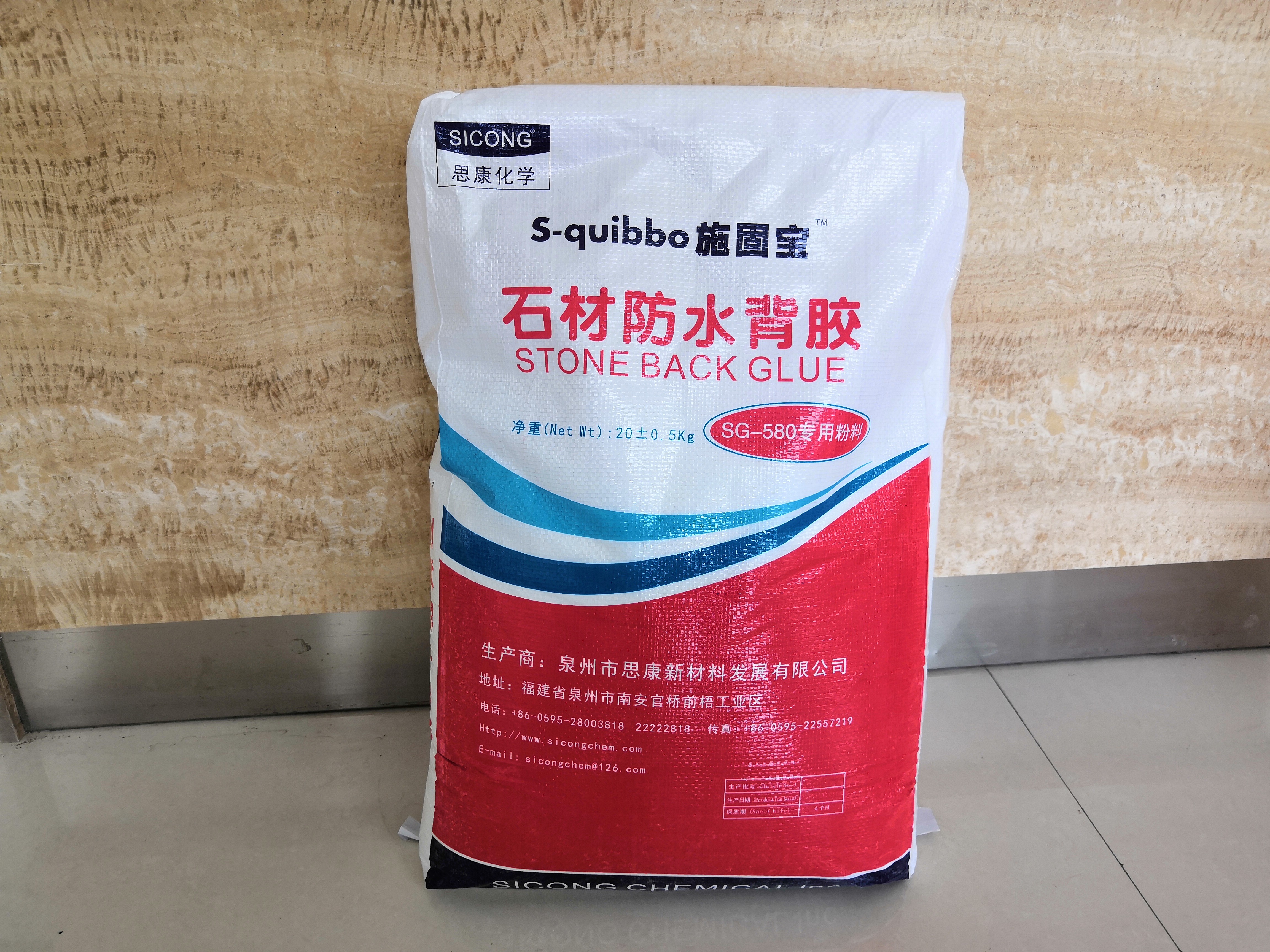 本品為防水型增強背膠,由水性高分子聚合物及硅酸鹽膠凝材料組成。使用時刮涂于石材底面,必要時復合玻纖網以強化增強效果。本品與石材底面粘結力優異且耐久性強,“不起殼”脫層,膠層與水泥砂漿、水泥基粘結劑(俗稱“膠泥”)及其它多種粘結劑粘結性能優良。確保濕貼安裝時“不空鼓”、不脫落。解決于傳統樹脂增強背膠與水泥砂漿與水泥基粘結性能差,易造成“空鼓”至剝落的問題。