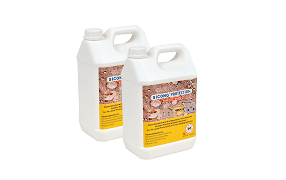本防護劑為溶劑型產品,具有極強的滲透性能有效滲入基材內部,表面不留任何痕跡,不改變石色,表面重涂性好,如果基材局部磨損嚴重,可進行重涂施工,仍能達到好的防護效果。本防護劑具有優良的耐化學性,抗老化性和耐候性,透氣性好,有效壽命可達5年以上。具有防油防水,防潮,防凍,防污染,抗風化寶色的功能,適用于各種場合,特別是食堂,停車場等易被油污染的地方,防護效果好。經本防護劑處理的基材,可防止苔蘚,地衣及霉菌的生長,冬天不會因吸水結冰膨脹而剝落。干掛板材經本防護劑處理,能保護鋼架和結構不受潮氣侵蝕而銹損,從而提高了石材的使用壽命和安全性。產品固化后在接觸食物時,無任何毒性,不會對人體有害。